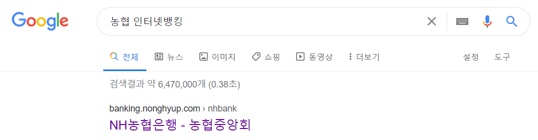 포털사이트에서 농협 인터넷뱅킹을 검색하면 상단에 주소가 나와서 바로 접속할 수 있습니다.