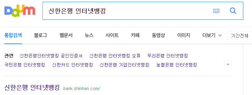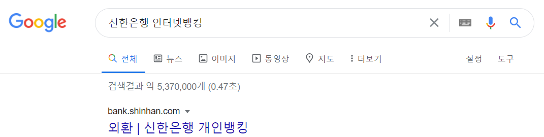 상단에 신한은행 인터넷뱅킹 주소가 바로 나옵니다.