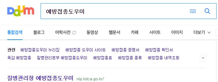 먼저 포털사이트검색창에 예방접종도우미를 검색하면 상단에 주소가 나옵니다.